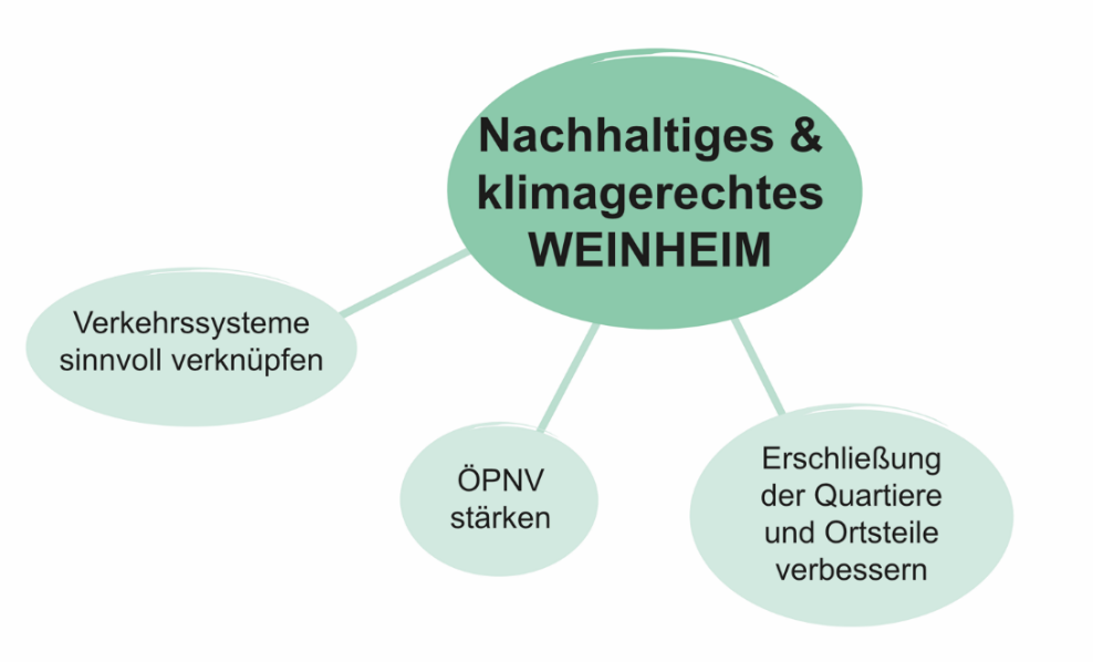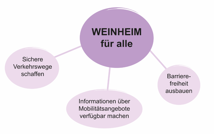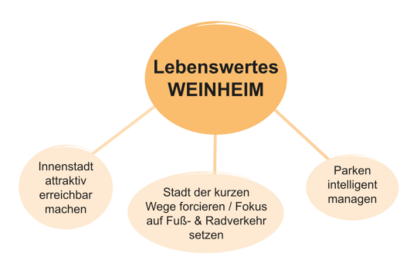 Aus dem Zielkonzept und dem Szenario „gemeinsam mobil“ wurden nun konkrete Maßnahmenideen abgeleitet. Sie bilden den Rahmen für die Mobilitäts- und Verkehrsentwicklung in Weinheim in den kommenden zehn bis fünfzehn Jahren.